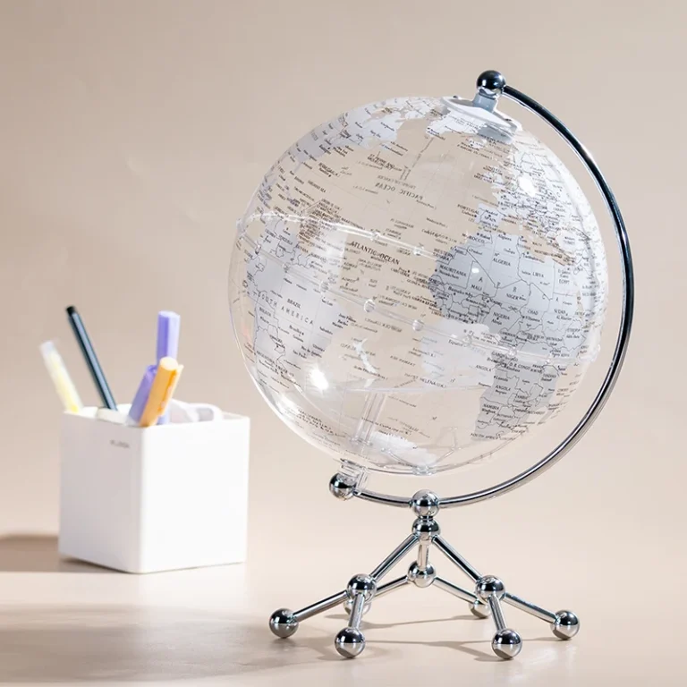 Wellfun Modern Light Luxury Transparent Earth Globe Metal Stand Acrylic Decorative Desk Globes Decoration