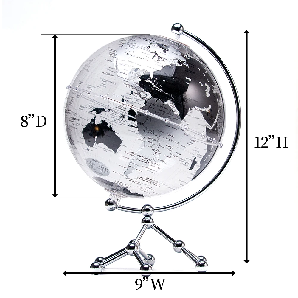 20CM Silver Metal Frame Geography Education Rotating Earth Globe High Quality  World Map Decor