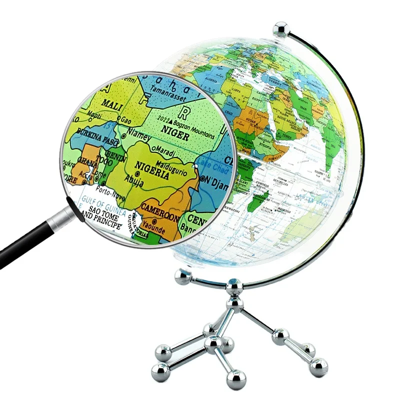Our world globe with stand is carefully produced with long-lasting materials, edurable and stable base, easy-read high clear printed map, clear geographical details. More geography globes for education, home decoration globes, gift globes, plastic globes, metal geography globes, aluminum geography globes, Acrylic geography globes, Please visit our homepage to check.