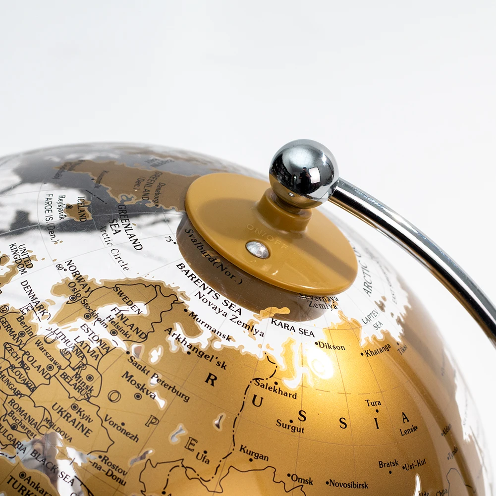 Our world globe with stand is carefully produced with long-lasting materials, a durable and stable base, easy-read, high clear printed map, and clear geographical details. More geography globes for education, home decoration globes, gift globes, plastic globes, metal geography globes, aluminum geography globes, Acrylic geography globes.