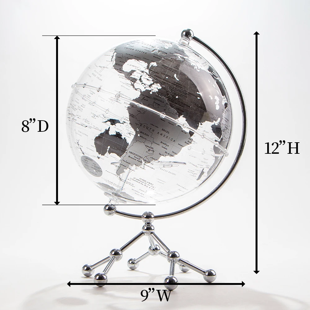 Our world globe with stand is carefully produced with long-lasting materials, a durable and stable base, easy-read, high-quality printed map, and clear geographical details. More geography globes for education, home decoration globes, gift globes, plastic globes, metal geography globes, aluminum geography globes, and acrylic geography globes.