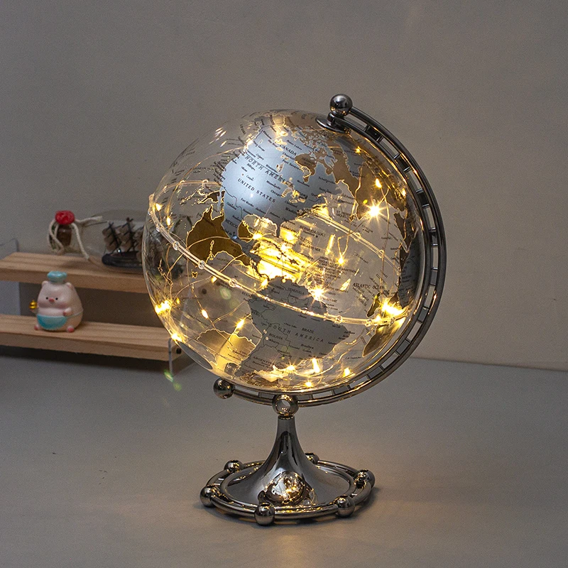Wellfun Transparent Office Decor Creative Crafts Silver HD Printed Map Desk Novelty Gifts Globe Earth Globe Decor Globe